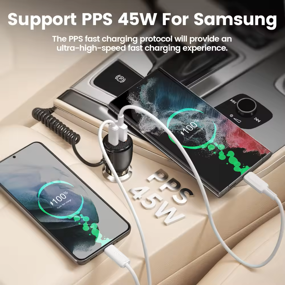 • Compatibilité: Compatible avec Galaxy S23, S23 Ultra, S23+, S22, S21, S20, Note 10, Note 9, A53, A52s, A13, A14 4G/ 5G, A12, S10, S9, S8, A04S, A20e, A21S, A23, A32, A33, A40, A41, A50, A51, A53, Redmi Note 10/ Note 9, Huawei P40/ P30/ P30 Lite/ P20 Lite/ Mate 20 Lite, etc. Il convient aux véhicules à voltage de 12-24V. i-Phone 14/ 14 Plus/ 14 Pro/ 14 Pro,13,12,11…