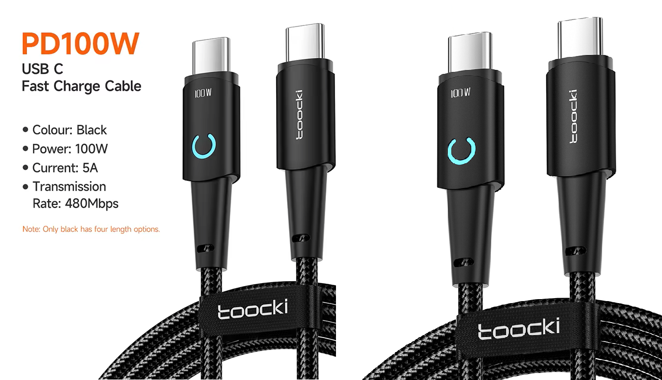 Lot de 2 Câbles USB Toocki Type-C / Type-C 2 m 100w